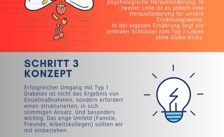 Im zweiten Schritt nach der Akzeptanz der Krankheit ist es wichtig, sich auf positive Weise mit der eigenen Ernährung zu beschäftigen und in ihr den zentralen Schlüssel zum Dia-Erfolg ohne Gluko-Kicks zu erkennen.
