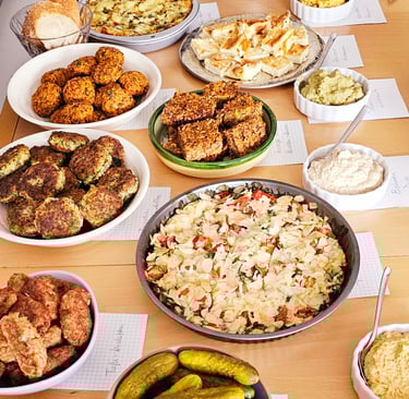 Seit 2013 veranstalte ich jedes Jahr im April eine Party mit Wodkaverkostung und von je her mache ich dazu ein großes Buffet. Denn vor dem Trinken kommt das Essen und wer viel (polnischen!) Wodka trinkt, der sollte vorher viel und herzhaft essen. Dabei stand mein Buffet stets unter einem bestimmten Motto nach dem sich alle Gerichte richten mussten, wie Rote Bete, Karotte, etc., - egal ob Fingerfood, Salate, Dips oder Desserts. Und selbstverständlich musste auch immer alles gut aussehen, sehr abwechslungsreich und lecker sein. Die Buffets waren immer der strahlende Mittelpunkt der Party.
