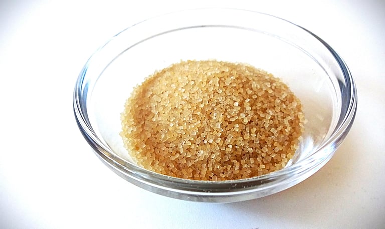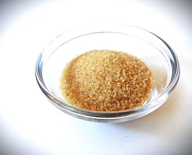 Brauner Zucker ist eigentlich Rohrzucker, auf Verpackungen als „Brauner Rohrzucker fein unraffiniert“ bezeichnet. Zusätzlich zum raffinierten, weißen Zucker hat der braune Zucker eine leichte Karamellnote. Mit 99,9 % Kohlenhydrate und Zuckeranteil unterscheidet er sich jedoch nicht vom raffinierten Kristallzucker. Ich verwende es dennoch in geringen Mengen bei einigen Süßspeisen, da seine Geschmackstiefe Erythrit und Stevia gut ergänzt, die m.E. keine ausreichende Geschmackstiefe aufweisen. In vielen Supermärkten wird dieser Zucker mit dem "Fairtrade"-Siegel angeboten, was ich bevorzugt verwende.