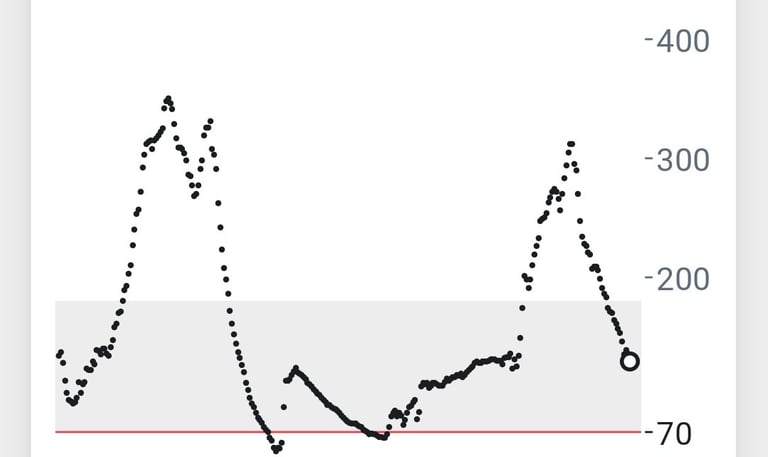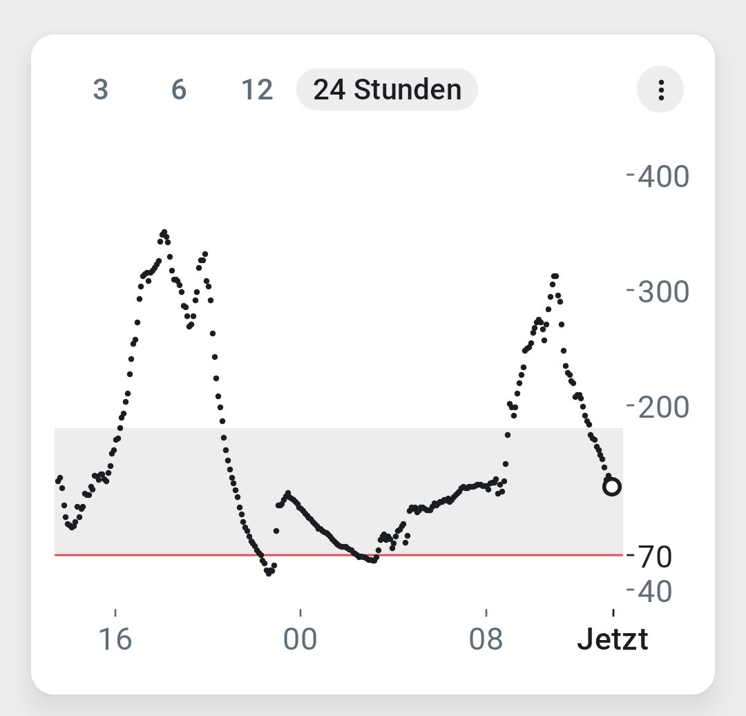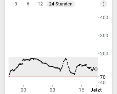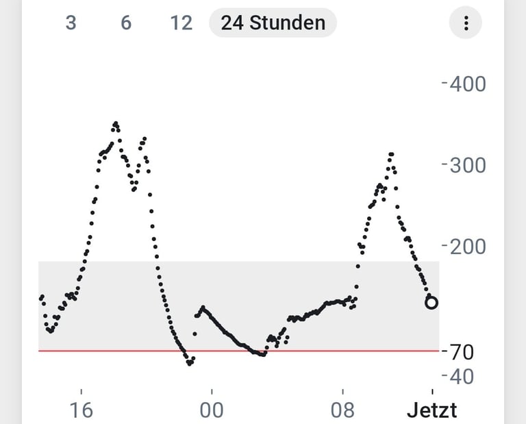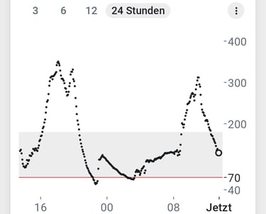 Abb. 2: 24 Std. Blutzucker ohne Gluko-Kicks nach meiner Ernährungsumstellung